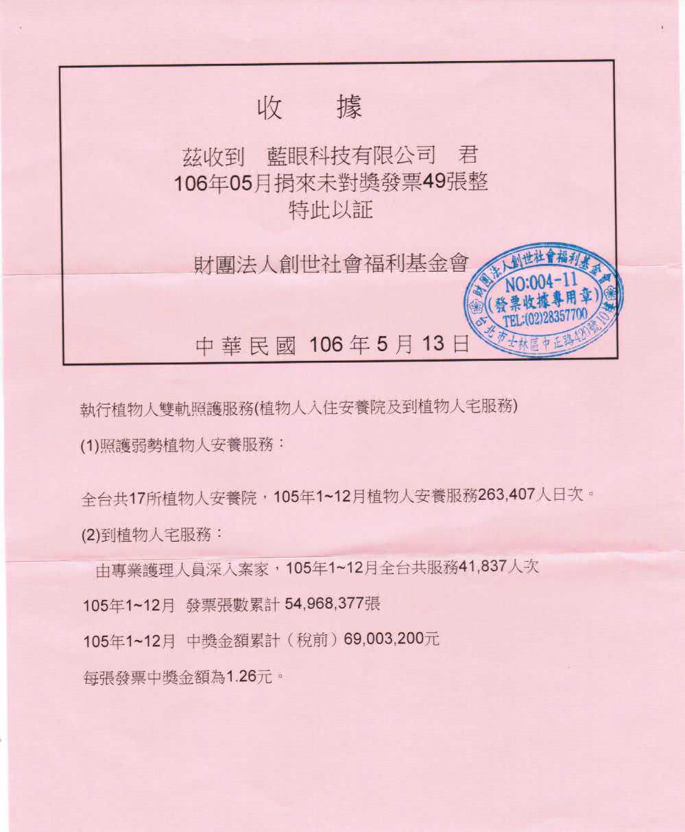 5. 購買本軟體時,您可以選擇將發票捐贈 創世基金會 ,照顧植物人做社福,大家 多多捐發票 ,社會有溫馨。